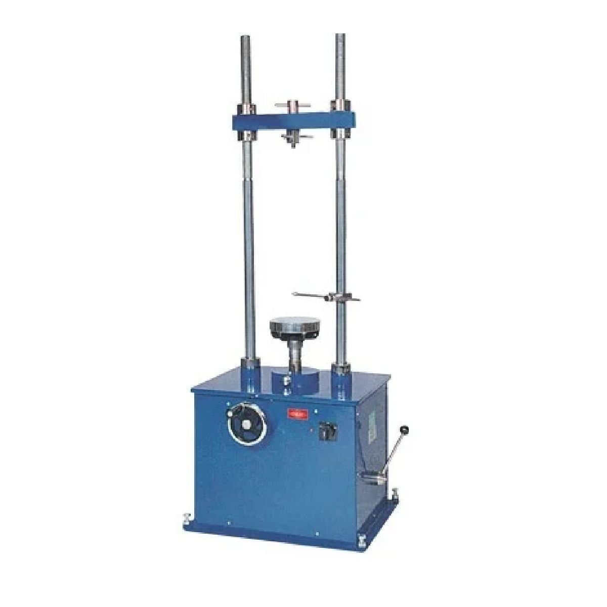 This load frame gives a choice of thirty constant rates of strain from a maximum of 0.25 in./min., to 0.0000192 in./min. This can be used whenever there is a requirements of these different strain rates with a maximum load capacity of 5 tonnes. For the research work it is really invaluable. The unit consists of a cabinet which houses the gear system and motor with sturdy angle iron frame. This loading is done through the bottom of loading platan which is carried on a lead screw which advances upwards. The top load bracket which slides over two upright pillars can be positioned at any desired height and locked. It carries hexagonal screw adatptor for standard proving rings. Suitable for operation on 220 volts, 50 cycles, single phase, A.C. supply.